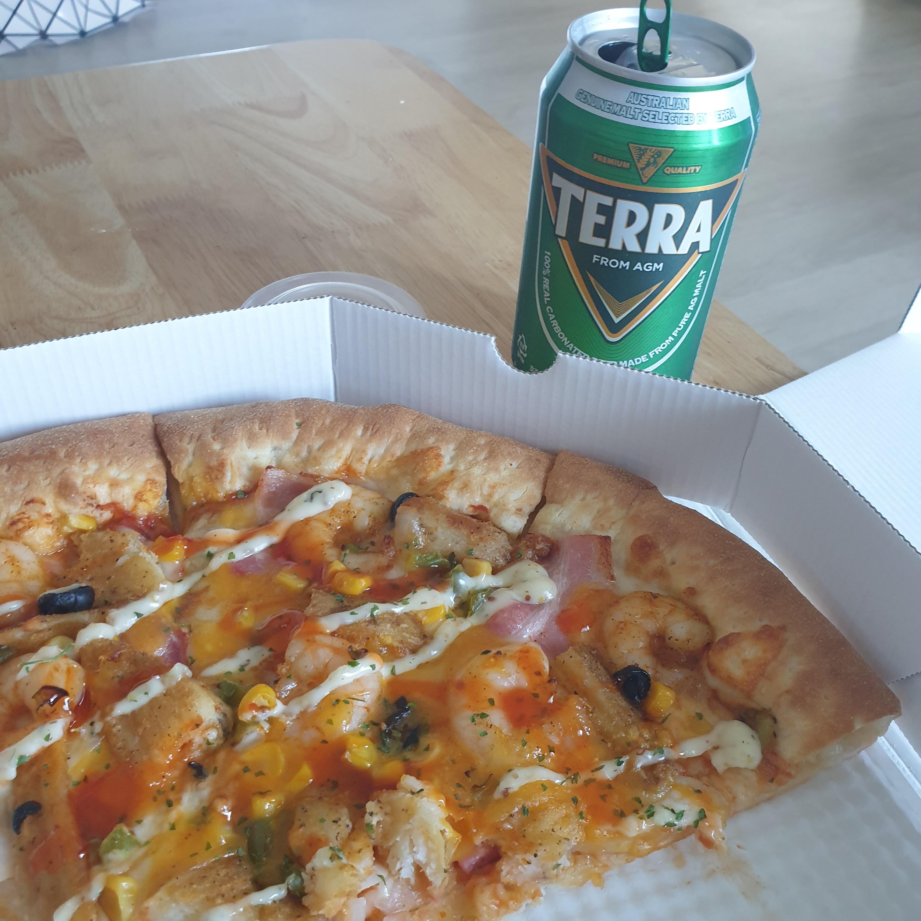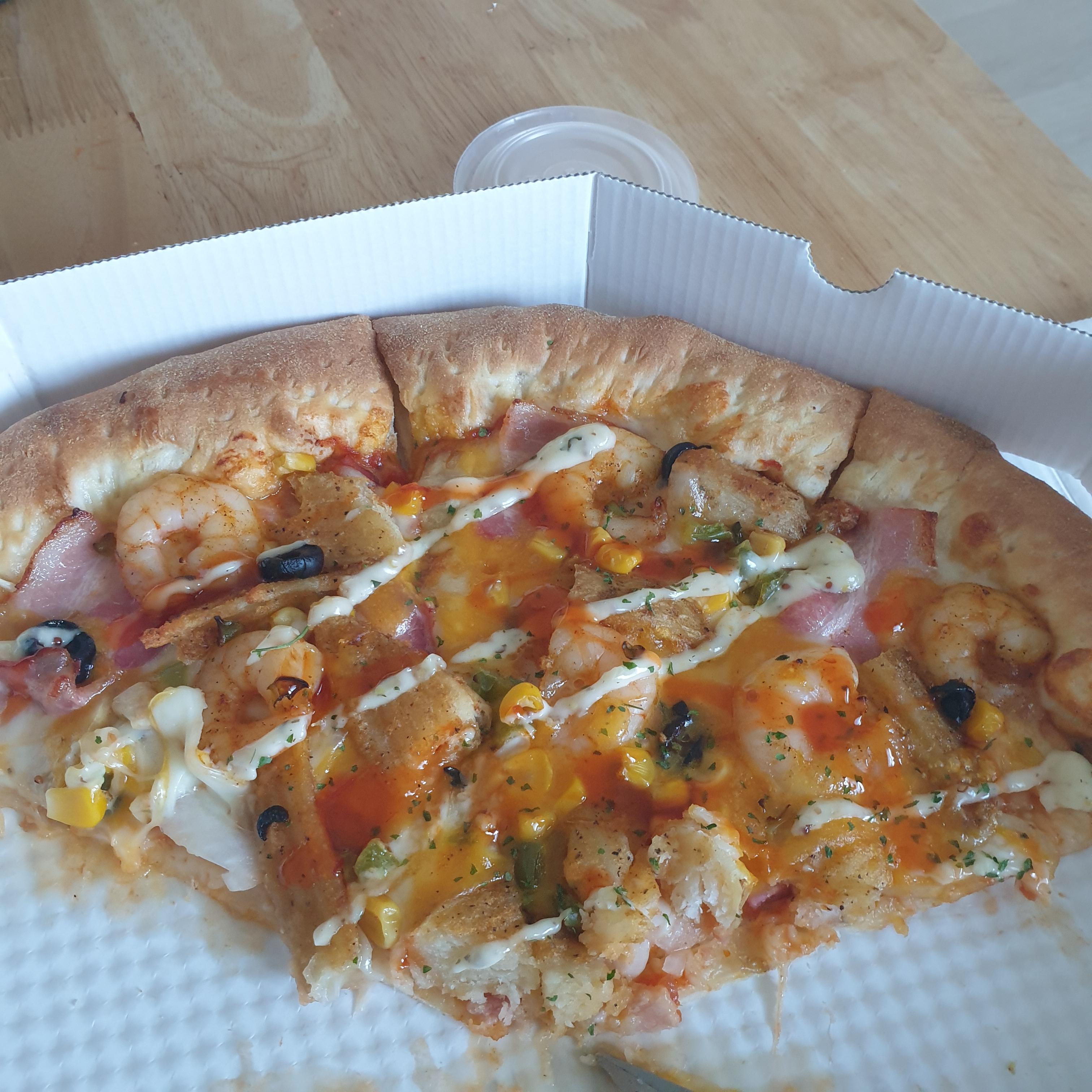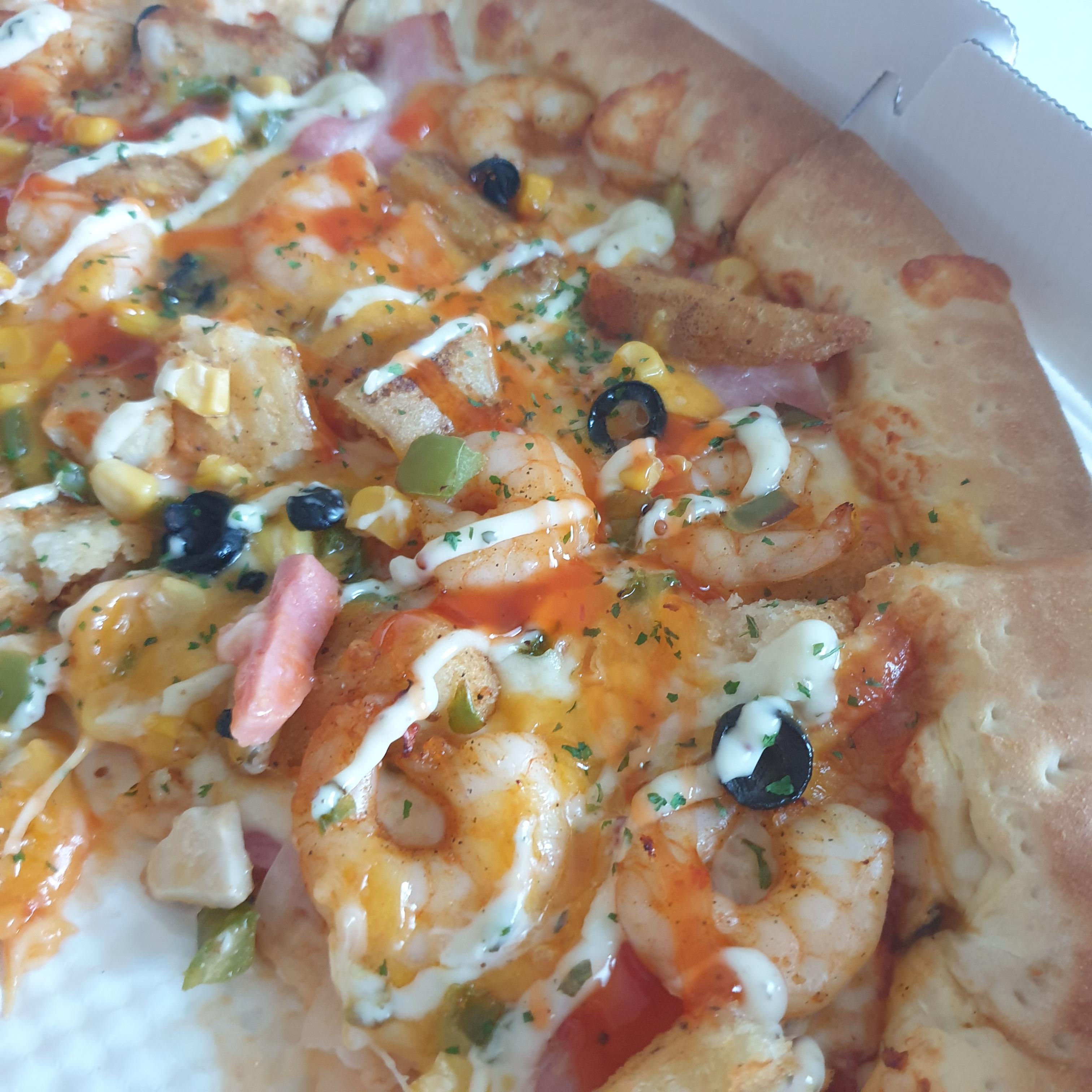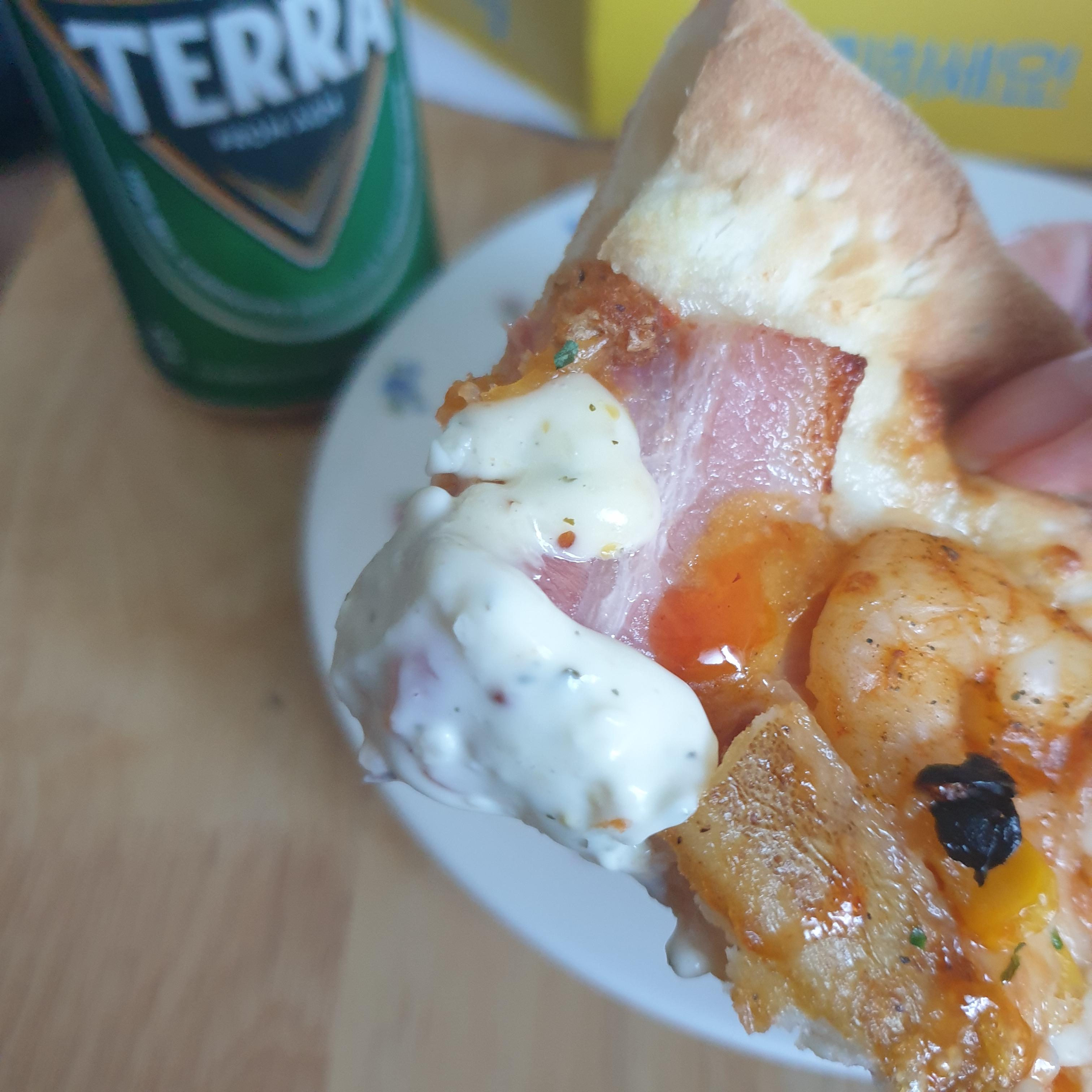 #베이컨쉬림프피자 라지한판에 치즈크러스트 추가