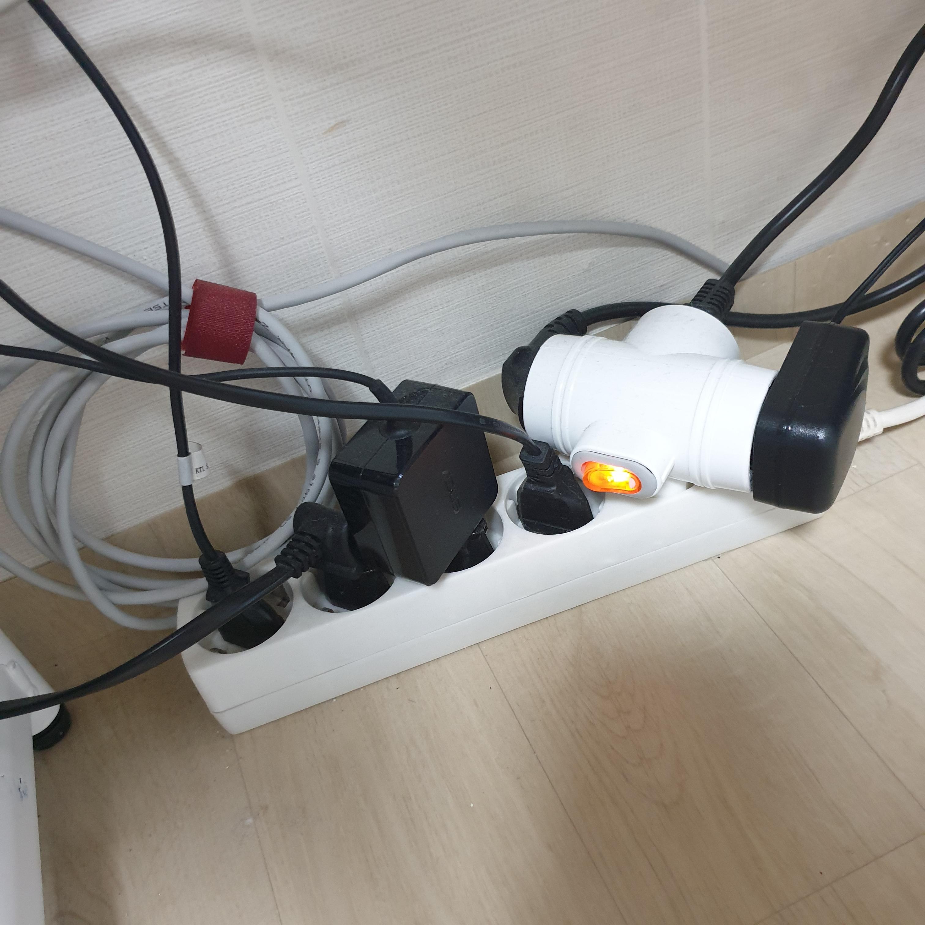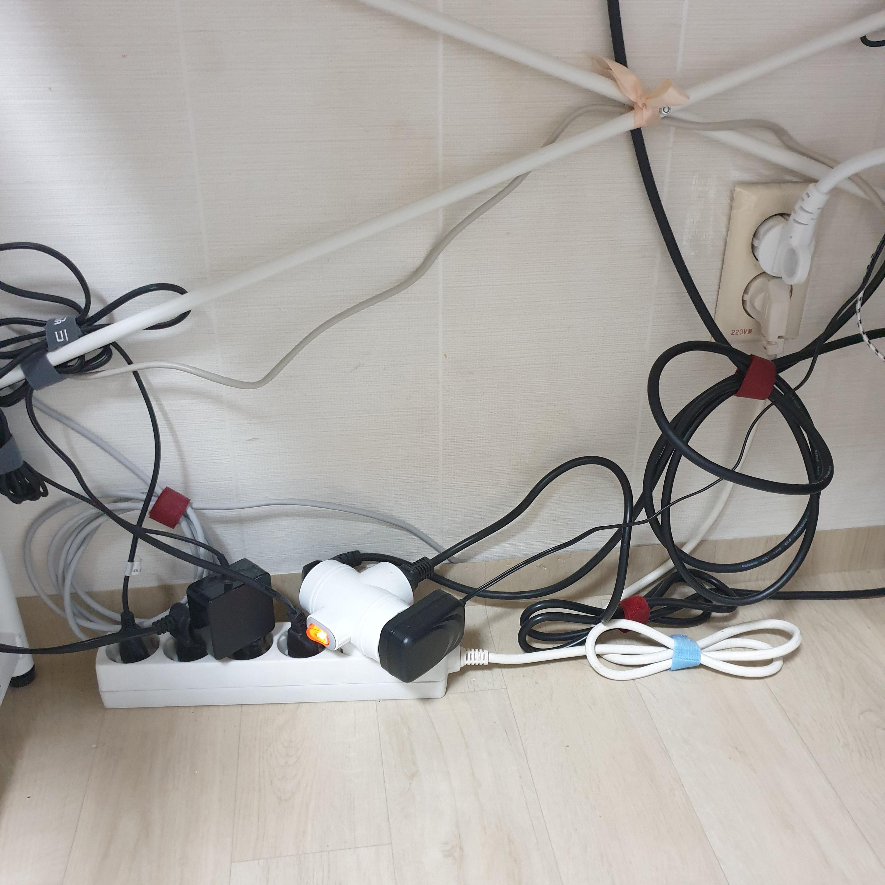콘센트 하나에 연결된 멀티탭에 7개 코드가 꼽혀있어요. 그러니 당근 혼돈의 도가니가 연출 되지용