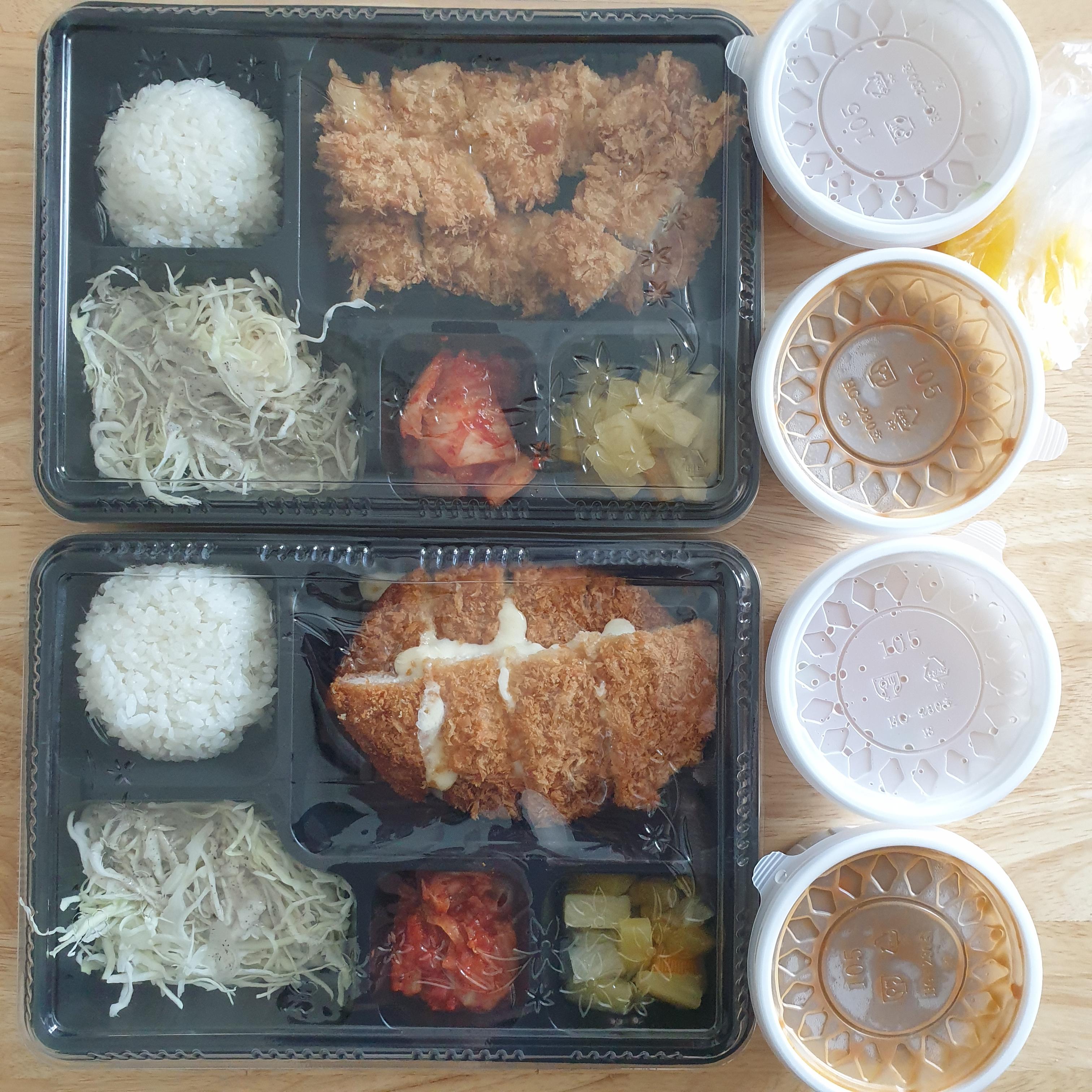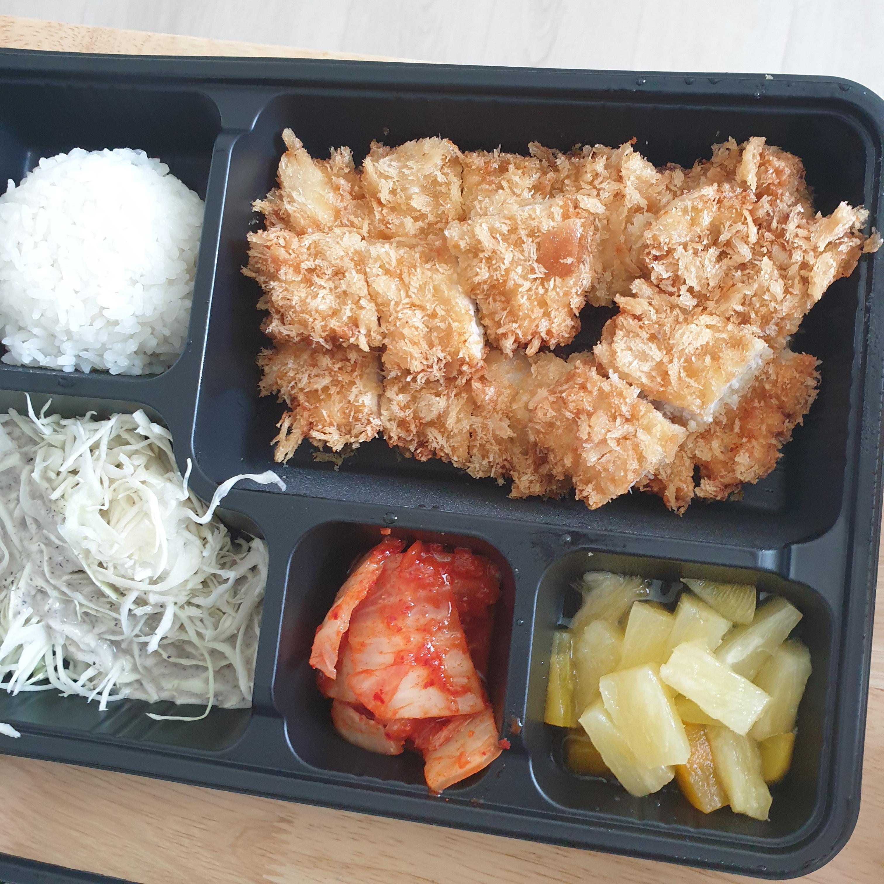돈까스 도시락 전체 구성이 매우 훌륭함