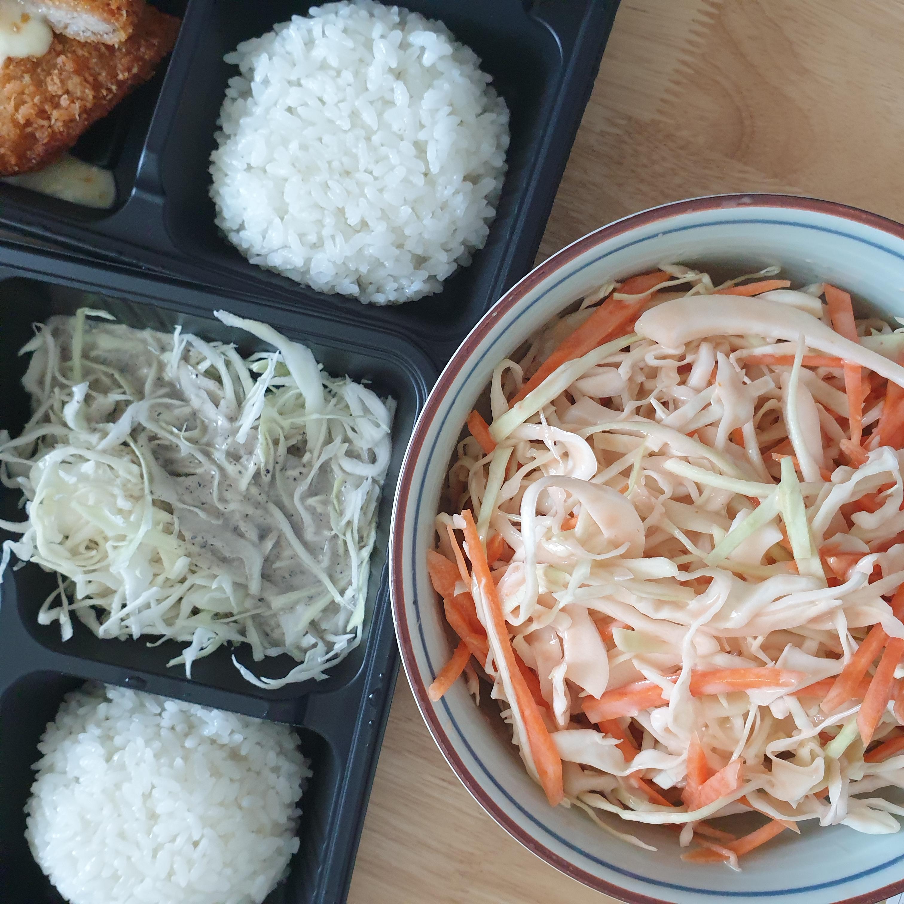 평소 양배추샐러드는 매일 먹고 있어서 홈메이드는 양배추샐러드를 추가로 곁들였습니다.