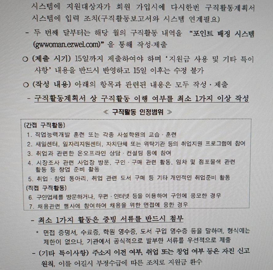매뉴얼에 명시된 구직활동 인정범위 입니다.