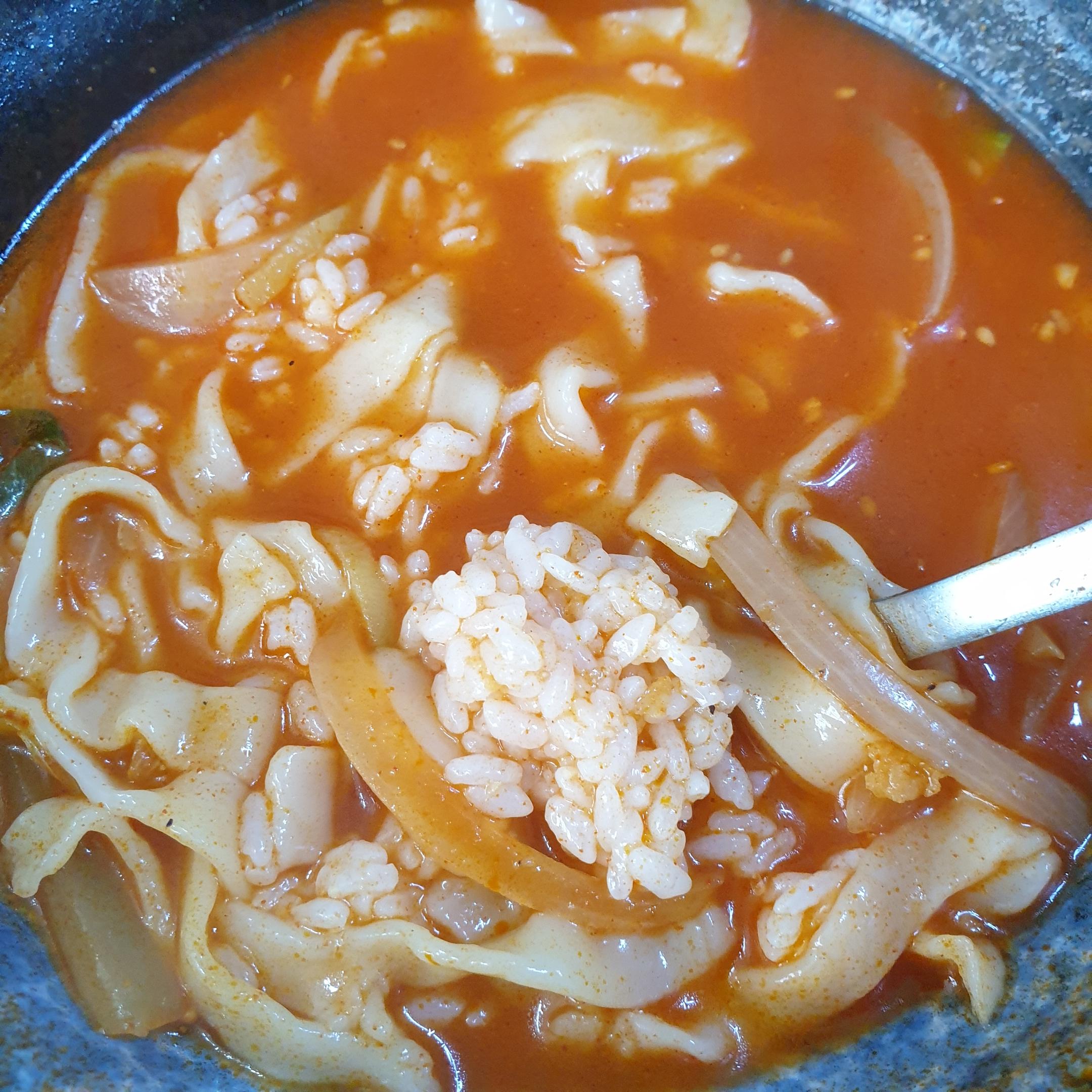 일행이 남긴 공깃밥을 짬뽕칼국수에 한번 말아보았습니다.