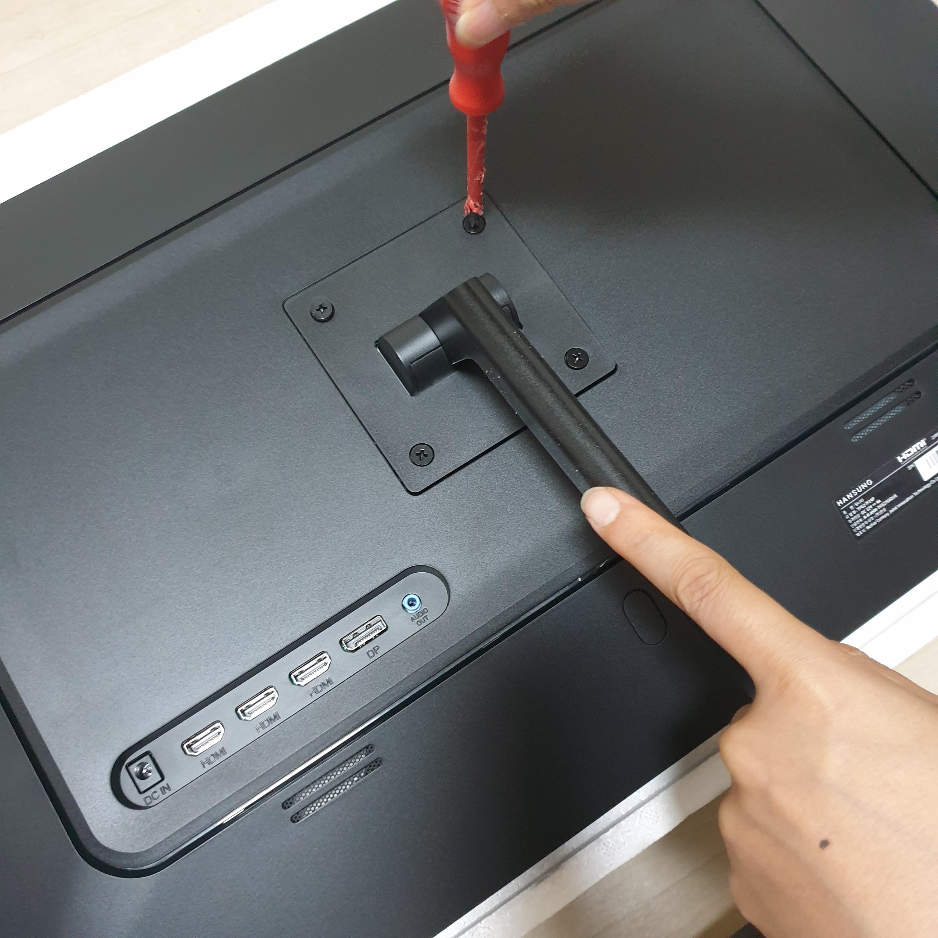 스탠드를 모니터에 결합시켜 줍니다.